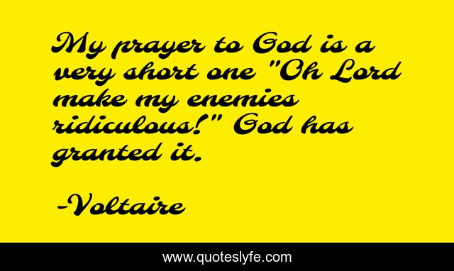 This page presents the quote "My prayer to God is a very short one "Oh Lord make my enemies ridiculous!" God has granted it.". Author of this quote is Voltaire. .