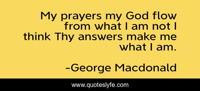 This page presents the quote "My prayers my God flow from what I am not I think Thy answers make me what I am.". Author of this quote is George Macdonald. .