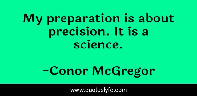 This page presents the quote "My preparation is about precision. It is a science.". Author of this quote is Conor McGregor. This quote is about preparation, precision,.