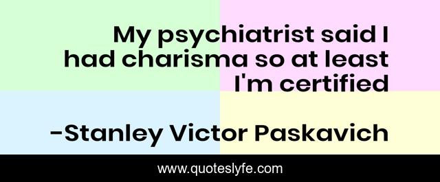 "Stanley Victor Paskavich Quotes." Quoteslyfe.com, 2025. Sat. 06 Dec. 2025. <https://www.quoteslyfe.com/quote/My-psychiatrist-said-I-had-charisma-so-103872>.
