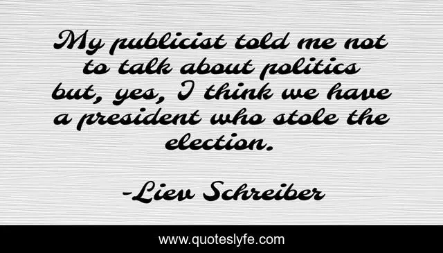 This page presents the quote "My publicist told me not to talk about politics but, yes, I think we have a president who stole the election.". Author of this quote is Liev Schreiber. This quote is about me, election, think,.