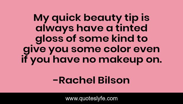 This page presents the quote "My quick beauty tip is always have a tinted gloss of some kind to give you some color even if you have no makeup on.". Author of this quote is Rachel Bilson. This quote is about color, makeup,.