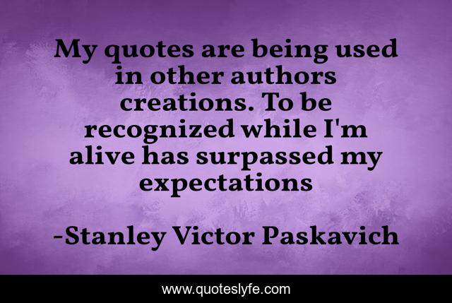 This page presents the quote "My quotes are being used in other authors creations. To be recognized while I'm alive has surpassed my expectations". Author of this quote is Stanley Victor Paskavich. This quote is about quotes, life, reality, stantasyland-com, stanley-victor-paskavich,.