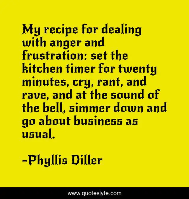 This page presents the quote "My recipe for dealing with anger and frustration: set the kitchen timer for twenty minutes, cry, rant, and rave, and at the sound of the bell, simmer down and go about business as usual.". Author of this quote is Phyllis Diller. .