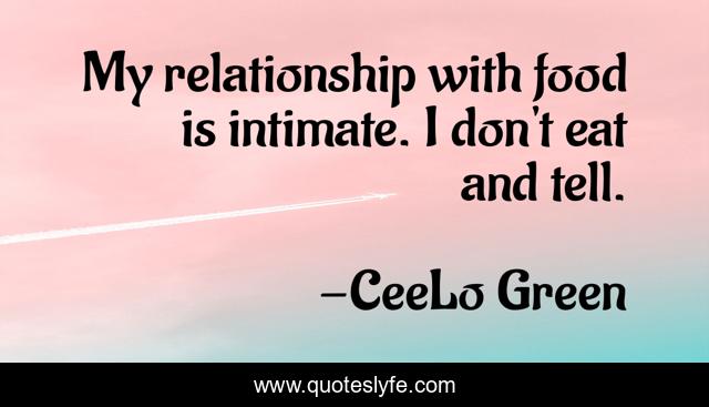 This page presents the quote "My relationship with food is intimate. I don't eat and tell.". Author of this quote is CeeLo Green. This quote is about food, eat,.