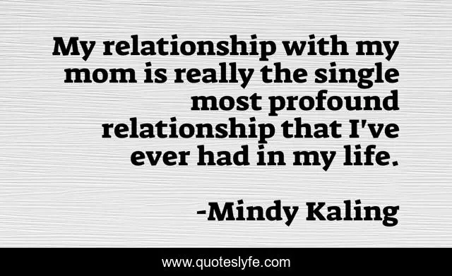 This page presents the quote "My relationship with my mom is really the single most profound relationship that I've ever had in my life.". Author of this quote is Mindy Kaling. This quote is about life, my life, relationship,.
