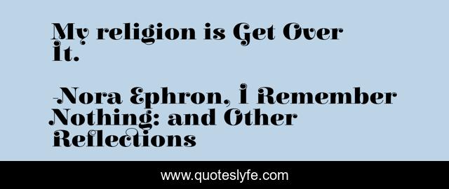 "Nora Ephron, I Remember Nothing: and Other Reflections Quotes." Quoteslyfe.com, 2025. Fri. 05 Dec. 2025. <https://www.quoteslyfe.com/quote/My-religion-is-Get-Over-It-104285>.
