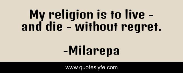 This page presents the quote "My religion is to live - and die - without regret.". Author of this quote is Milarepa. This quote is about religion, buddhism, philosophy, metaphysics,.