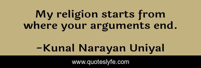 "Kunal Narayan Uniyal Quotes." Quoteslyfe.com, 2025. Fri. 05 Dec. 2025. <https://www.quoteslyfe.com/quote/My-religion-starts-from-where-your-arguments-44508>.