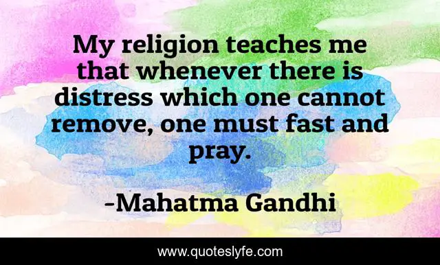 This page presents the quote "My religion teaches me that whenever there is distress which one cannot remove, one must fast and pray.". Author of this quote is Mahatma Gandhi. This quote is about me, pray, fast,.