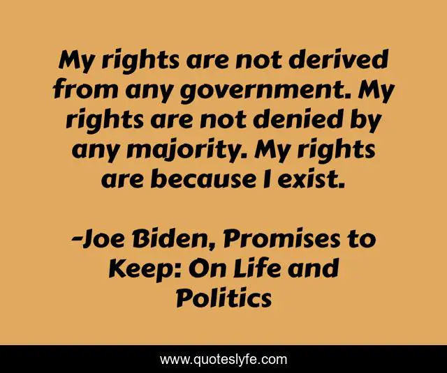"Joe Biden, Promises to Keep: On Life and Politics Quotes." Quoteslyfe.com, 2025. Fri. 05 Dec. 2025. <https://www.quoteslyfe.com/quote/My-rights-are-not-derived-from-any-280505>.