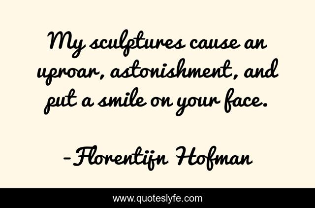 This page presents the quote "My sculptures cause an uproar, astonishment, and put a smile on your face.". Author of this quote is Florentijn Hofman. This quote is about put, your, face,.