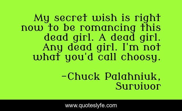 "Chuck Palahniuk, Survivor Quotes." Quoteslyfe.com, 2025. Sat. 06 Dec. 2025. <https://www.quoteslyfe.com/quote/My-secret-wish-is-right-now-to-226656>.