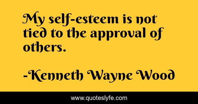 This page presents the quote "My self-esteem is not tied to the approval of others.". Author of this quote is Kenneth Wayne Wood. This quote is about opinions-of-others, self-esteem,.