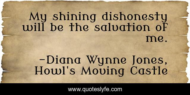 "Diana Wynne Jones, Howl's Moving Castle Quotes." Quoteslyfe.com, 2025. Mon. 08 Dec. 2025. <https://www.quoteslyfe.com/quote/My-shining-dishonesty-will-be-the-salvation-6282>.