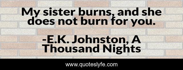 "E.K. Johnston, A Thousand Nights Quotes." Quoteslyfe.com, 2025. Mon. 08 Dec. 2025. <https://www.quoteslyfe.com/quote/My-sister-burns-and-she-does-not-101504>.