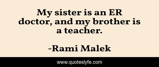 This page presents the quote "My sister is an ER doctor, and my brother is a teacher.". Author of this quote is Rami Malek. This quote is about sister, brother, doctor,.