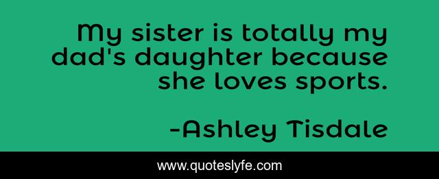 This page presents the quote "My sister is totally my dad's daughter because she loves sports.". Author of this quote is Ashley Tisdale. This quote is about sister, daughter, she,.