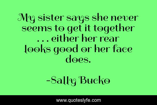 This page presents the quote "My sister says she never seems to get it together . . . either her rear looks good or her face does.". Author of this quote is Sally Bucko. .