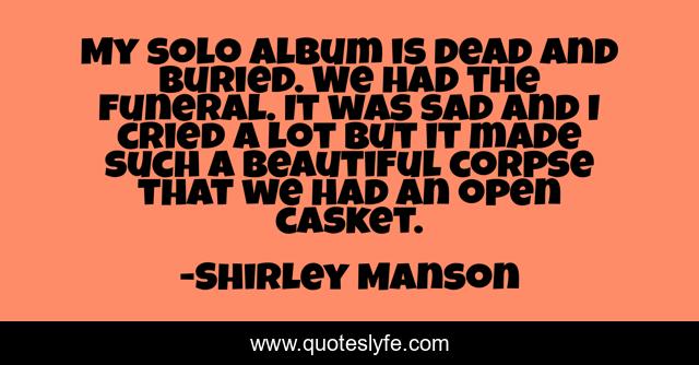 This page presents the quote "My solo album is dead and buried. We had the funeral. It was sad and I cried a lot but it made such a beautiful corpse that we had an open casket.". Author of this quote is Shirley Manson. This quote is about beautiful, funeral, dead,.