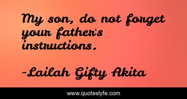 This page presents the quote "My son, do not forget your father's instructions.". Author of this quote is Lailah Gifty Akita. This quote is about wise-sayings, instructions, father, son,.