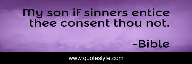 This page presents the quote "My son if sinners entice thee consent thou not.". Author of this quote is Bible. .