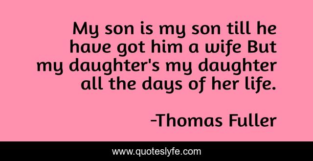 This page presents the quote "My son is my son till he have got him a wife But my daughter's my daughter all the days of her life.". Author of this quote is Thomas Fuller. .
