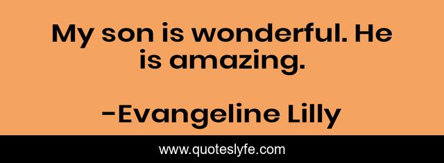This page presents the quote "My son is wonderful. He is amazing.". Author of this quote is Evangeline Lilly. This quote is about son, wonderful, he,.