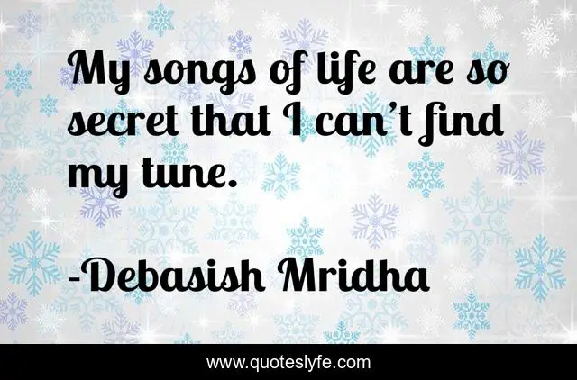 "Debasish Mridha Quotes." Quoteslyfe.com, 2025. Sat. 06 Dec. 2025. <https://www.quoteslyfe.com/quote/My-songs-of-life-are-so-secret-23814>.