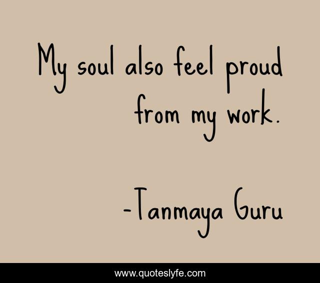 This page presents the quote "My soul also feel proud from my work.". Author of this quote is Tanmaya Guru. .