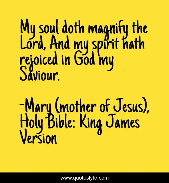 "Mary (mother of Jesus), Holy Bible: King James Version Quotes." Quoteslyfe.com, 2025. Mon. 08 Dec. 2025. <https://www.quoteslyfe.com/quote/My-soul-doth-magnify-the-Lord-And-10712>.