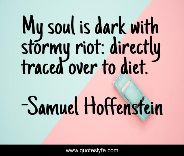This page presents the quote "My soul is dark with stormy riot: directly traced over to diet.". Author of this quote is Samuel Hoffenstein. This quote is about dark, my soul, soul,.