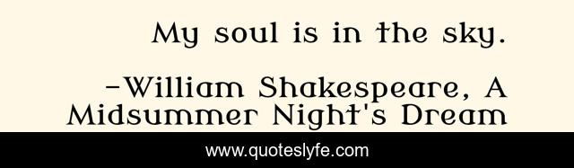 This page presents the quote "My soul is in the sky.". Author of this quote is William Shakespeare, A Midsummer Night's Dream. This quote is about faith, literature, wisdom,.