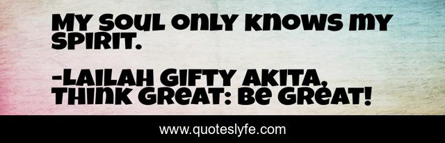 "Lailah Gifty Akita, Think Great: Be Great! Quotes." Quoteslyfe.com, 2025. Sat. 06 Dec. 2025. <https://www.quoteslyfe.com/quote/My-soul-only-knows-my-spirit-85046>.