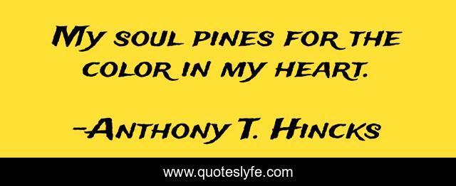 This page presents the quote "My soul pines for the color in my heart.". Author of this quote is Anthony T. Hincks. This quote is about heart, love, color, my, colour, philosophy, soul, pines, miss,.