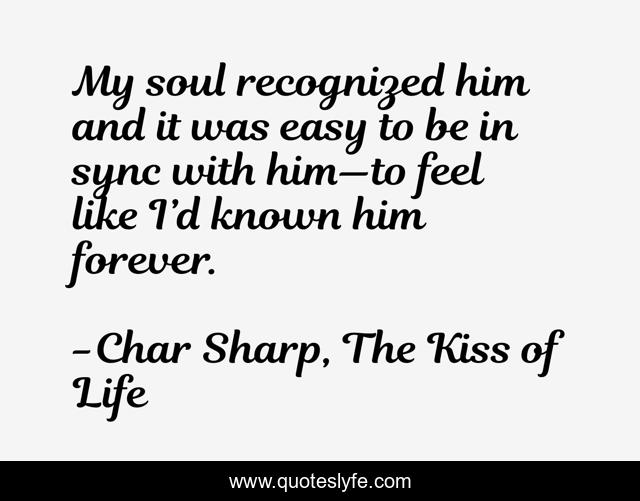 This page presents the quote "My soul recognized him and it was easy to be in sync with him—to feel like I’d known him forever.". Author of this quote is Char Sharp, The Kiss of Life. .
