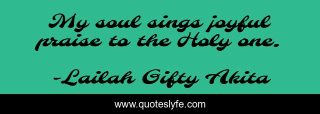 This page presents the quote "My soul sings joyful praise to the Holy one.". Author of this quote is Lailah Gifty Akita. This quote is about praises-and-worship, christian-life, sing,.