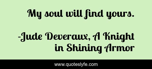 "Jude Deveraux, A Knight in Shining Armor Quotes." Quoteslyfe.com, 2025. Sun. 07 Dec. 2025. <https://www.quoteslyfe.com/quote/My-soul-will-find-yours-17684>.