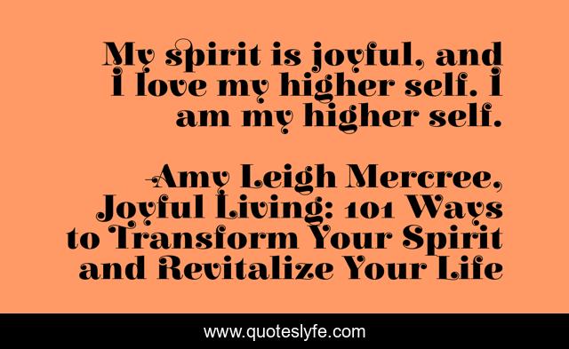 This page presents the quote "My spirit is joyful, and I love my higher self. I am my higher self.". Author of this quote is Amy Leigh Mercree, Joyful Living: 101 Ways to Transform Your Spirit and Revitalize Your Life. This quote is about life, quotes-de-la-vida, amy-leigh-mercree, joy, higher-self, self-love, joyful-living, quotes-tumblr, joyful-living-101,.