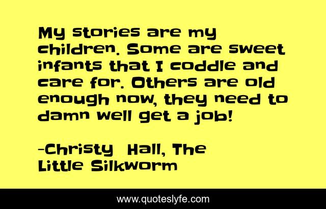 "Christy Hall, The Little Silkworm Quotes." Quoteslyfe.com, 2025. Fri. 05 Dec. 2025. <https://www.quoteslyfe.com/quote/My-stories-are-my-children-Some-are-187075>.