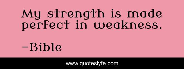 This page presents the quote "My strength is made perfect in weakness.". Author of this quote is Bible. .