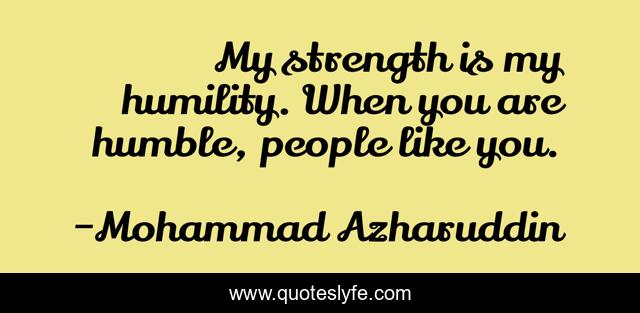This page presents the quote "My strength is my humility. When you are humble, people like you.". Author of this quote is Mohammad Azharuddin. This quote is about humble, humility, people,.