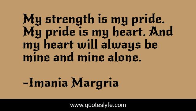 "Imania Margria Quotes." Quoteslyfe.com, 2025. Mon. 08 Dec. 2025. <https://www.quoteslyfe.com/quote/My-strength-is-my-pride-My-pride-47753>.