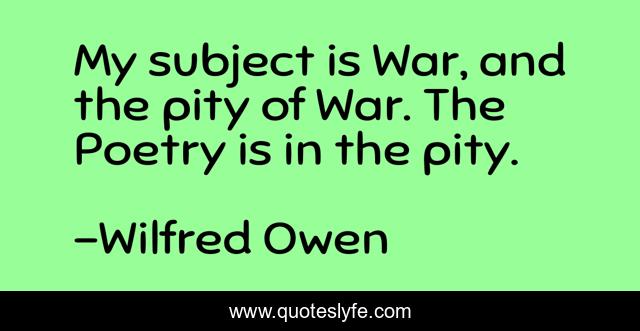 This page presents the quote "My subject is War, and the pity of War. The Poetry is in the pity.". Author of this quote is Wilfred Owen. This quote is about pity, poetry, subject,.