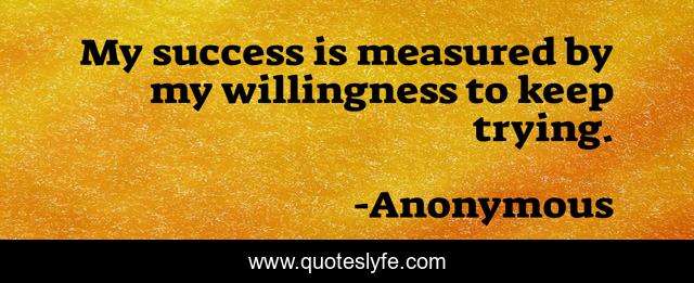 This page presents the quote "My success is measured by my willingness to keep trying.". Author of this quote is Anonymous. .