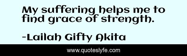 This page presents the quote "My suffering helps me to find grace of strength.". Author of this quote is Lailah Gifty Akita. This quote is about enthusiasm, suffering, strength, inspirational,.