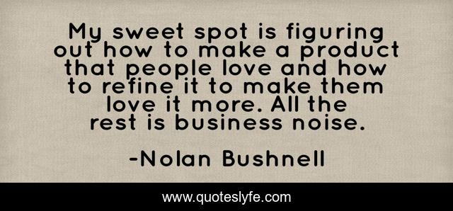 This page presents the quote "My sweet spot is figuring out how to make a product that people love and how to refine it to make them love it more. All the rest is business noise.". Author of this quote is Nolan Bushnell. This quote is about sweet, love, affection, people,.