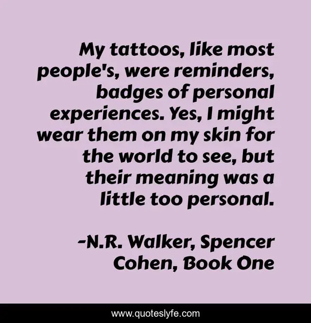 "N.R. Walker, Spencer Cohen, Book One Quotes." Quoteslyfe.com, 2025. Mon. 08 Dec. 2025. <https://www.quoteslyfe.com/quote/My-tattoos-like-most-people-s-were-86222>.