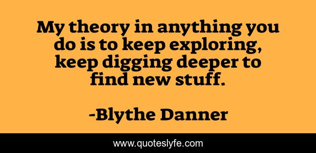This page presents the quote "My theory in anything you do is to keep exploring, keep digging deeper to find new stuff.". Author of this quote is Blythe Danner. .