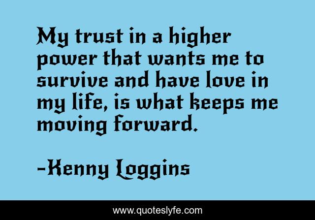 This page presents the quote "My trust in a higher power that wants me to survive and have love in my life, is what keeps me moving forward.". Author of this quote is Kenny Loggins. This quote is about life, trust, love, affection,.